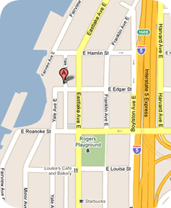 From the Eastside on 520: Take the 520 to the Roanoke St./I-5 North exit. Exit on to Roanoke St. and get into the left hand turn lane. Turn left on Roanoke St. Merge into right hand lane and proceed down Roanoke St. to Eastlake Ave. Turn right on Eastlake Ave. and left on E. Edgar St. after two blocks.
